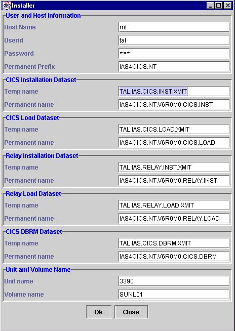 Figure 2-3    Completed Installer on Mainframe Dialog Box