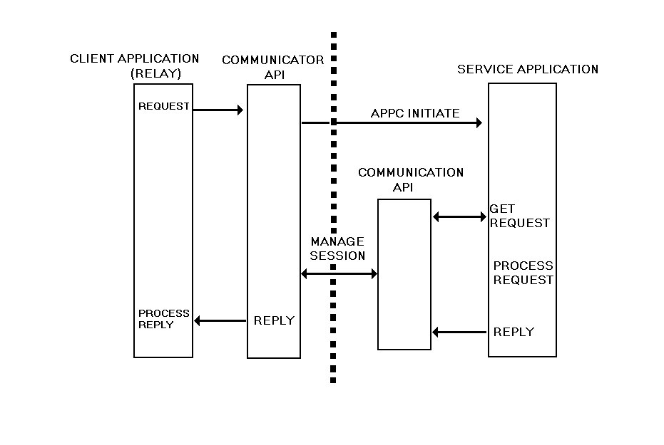 The communication API deals with client and servers (requester and responder). In our case the Relay acts as a client and the user-server application acts as the server.The application that initiates communication via the communication API is defined as the client application. when a client application initiates a call to remote service, the communication API starts the service application on the remote platform and manages an APPC or TCP/IP session in order to conduct the conversation.