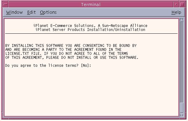 - Thoroughly read and understand the licensing information before installing and then enter Yes.