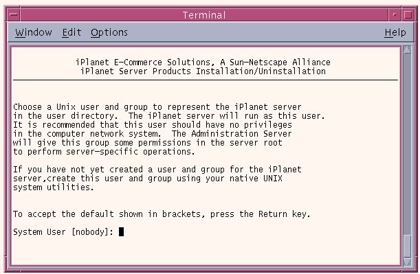 - Enter in a System User, or accept the default shown in brackets, and press Enter.
