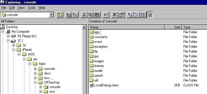 - During the uninstallation procedure the connector files shown in the right pane, see Figure 2-29, are removed from the iPlanet/iAS6/ias directory and moved to the UIFbackup/console directory. The connector files need to be copied back to their original location.