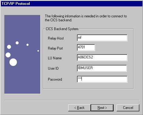 - Type in your CICS Backend System definition for TCP/IP and click Next.