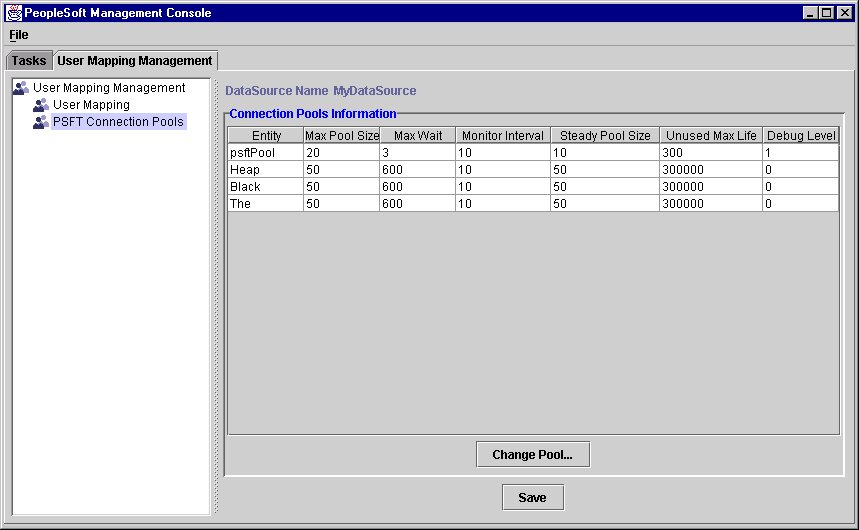 On User Mapping Management Tab, click on the PSFT Connection Pools node.