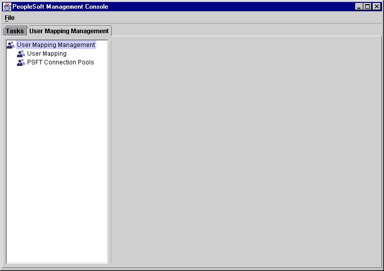 From the PeopleSoft Management Console window, click the User Mapping Management tab. See Figure 3-11.