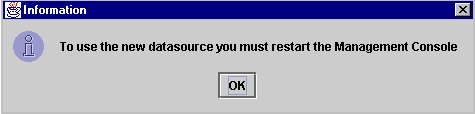 - A new data source is created and a message displays informing you that must restart the Management Console to use the newly created data source. See Figure 3-8.