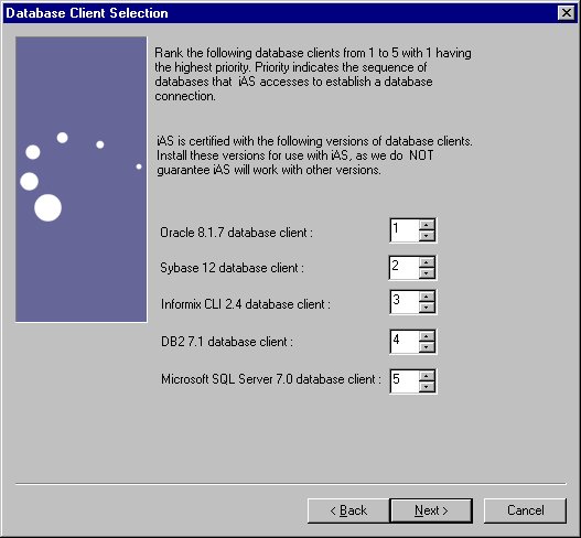 - The installation program lists all supported database clients. The clients allow your applications to connect to your database back ends. Rank the clients according to connection priority, whether you've installed them yet or not. Client software can be added after installation. Sample applications are configured for the highest priority database.