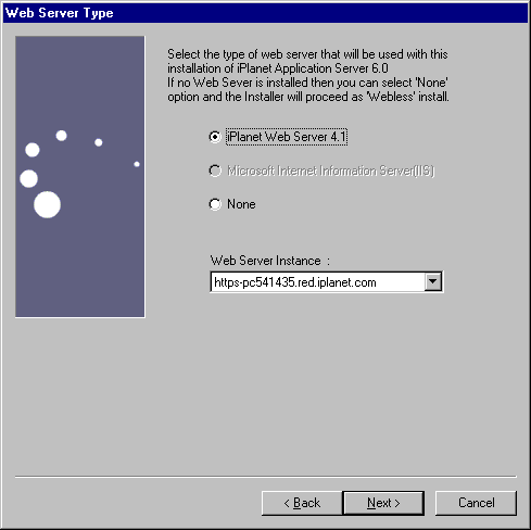 - In case of multiple instances of iPlanet Web Server, select one to associate with iPlanet Application Server.