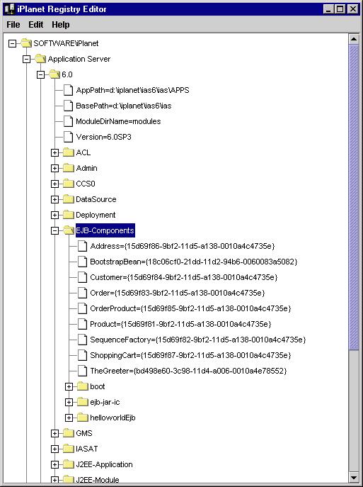 SOFTWARE\iPlanet\Application Server\6.5\EJB-Components
