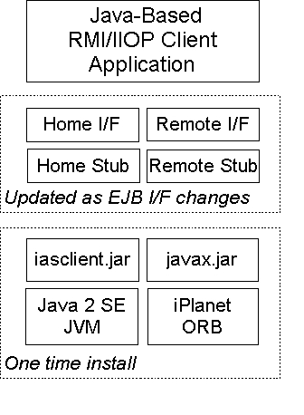 Using RMI/IIOP-based client applications with iPlanet Application Server is very similar to using clients with other J2EE-certified application servers. With minimal, if any, changes to the JNDI lookup section of your client, you can reuse your Java client to work with a variety of J2EE application servers.The following topics are covered in this section: