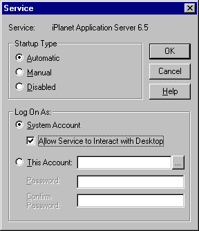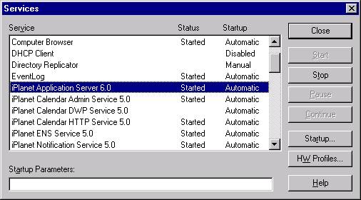 The iPlanet Application Server is automatically installed as a Windows service. To stop, and start the sever, and to set service properties, follow these steps: