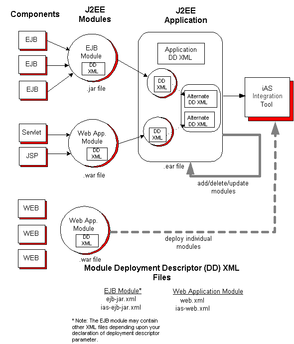 A module is comprised of one or more J2EE components with J2EE and iAS-specific deployment descriptor files.