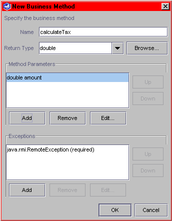 Bean Remote Interface The actual class name of the Remote Interface. In this example the name is salesTax.Sales.