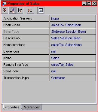 Use the Properties and References tabs to edit J2EE standard meta data for this session Enterprise Java Bean.