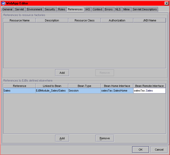Reference The name of the EJB as specified in your code. In this example, the name is Sales.