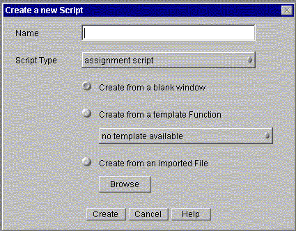 Click Create. Your new script appears in the Script Editor Window."Create from a template function" lets you base your script on another script of the same type which you have previously designated as a template. If you choose this radio button, choose a template from the drop-down list, and go to Step 5.