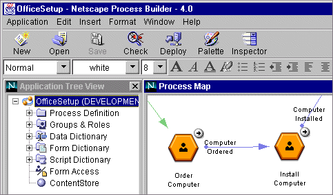 - Using the Process Builder component, process designers create and deploy an application that maps the steps in a business process.