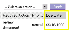 When Process Express displays work items in the work item list, it shows the expiration date for each work item. To test an expiration setter script, simply deploy the application and test it out. Check the expiration date for the relevant work item in the work item list in Process Express. For example, Figure 11-5 shows the due date in Process Express.