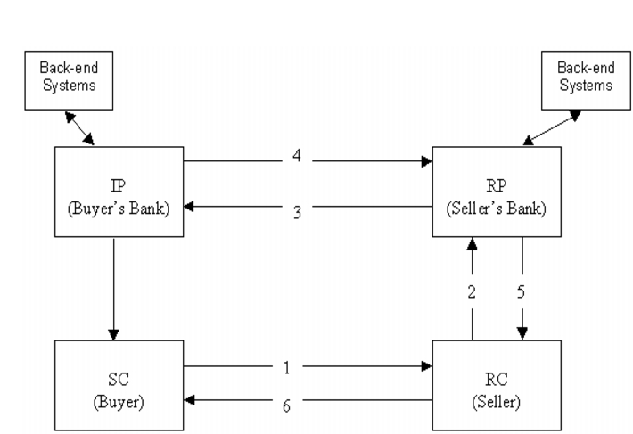 With the use of a payment scheme, a payment is secured by digitally signing payment instructions, providing authentication, message integrity, non-repudiation and confidentiality. The payment is efficient because parties have pre-established instructions with their banks for payment authorisation, routing and settlement that enables the Buyer to initiate a payment on-line, simultaneously with the purchase transaction, instead of through a separate, off-line step. Additional efficiencies are created through standardised payment processing procedures at the banks. In the case where the Seller requires assurance of payment, the Buyer can electronically request its bank, when initiating payment, to assume the responsibility to pay the Seller. This model does not create a new interbank payment system. It is a new channel or front end to initiate payments on existing, back office payment system.
