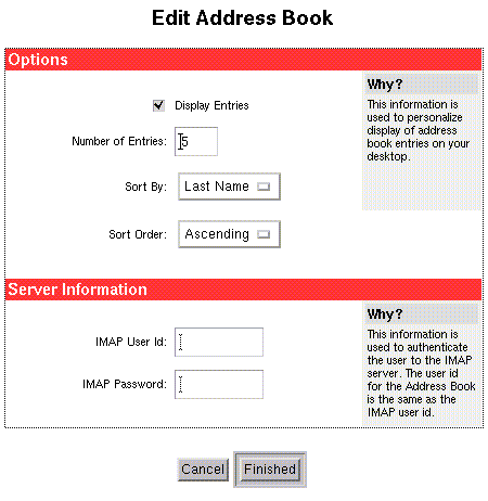 edit.template - This template displays the edit page of the address book channel on the user's HTML desktop. It uses the display-entries.template file to list the entire list of address book entries. Address book entries are displayed in the HTML channel only. It uses the [tag:iwtDesktop-fontFace1], [tag:iwtAddressBookProvider-displayEntries], [tag:iwtAddressBookProvider-numEntries], [tag:iwtAddressBookProvider-isNoSorting], [tag:iwtAddressBookProvider-isLnSelected], [tag:iwtAddressBookProvider-isFnSelected], [tag:iwtAddressBookProvider-isUpSelected], [tag:iwtAddressBookProvider-isDownSelected], [tag:iwtAddressBookProvider-IMAPUserId], and [tag:iwtAddressBookProvider-IMAPPassword] tags.