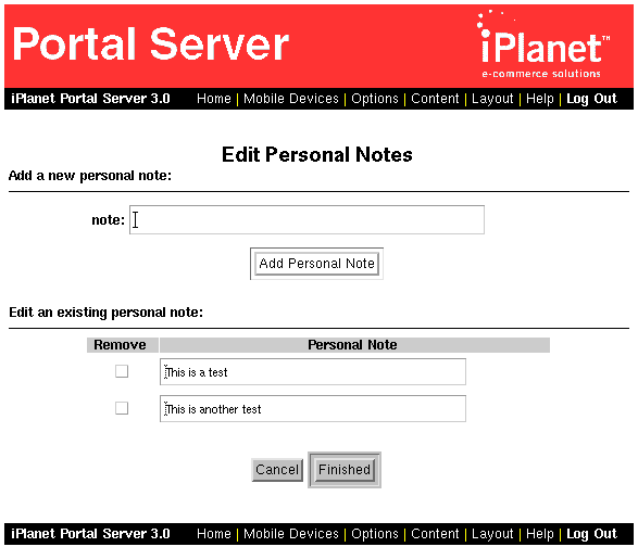 Figure 4-8    Sample Personal Notes Channel Edit Page