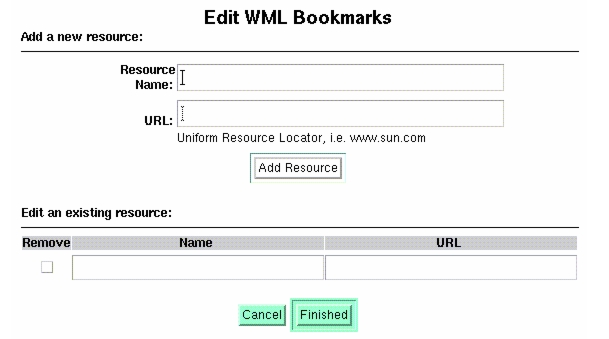 The following template files are located in /etc/opt/SUNWips/desktop/default/iwtWirelessBookmarkProvider/html, /etc/opt/SUNWips/desktop/default/iwtBookmarkProvidercHTML/chtml/ and in /etc/opt/SUNWips/desktop/default/iwtBookmarkProviderWML/wml/ directories. These files facilitate the display of the bookmark channel on all of the supported clients.