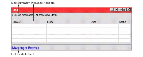 The mail channel uses the servername, username, and password set by the user in the edit UserInformation page or the edit Mail page to connect to the mail server and get the summary of the unread and total messages. The channel gets the undeleted message headers from the user's inbox and sorts them by the received date on the message. The channel then displays the message headers in the sort order specified by the user.
