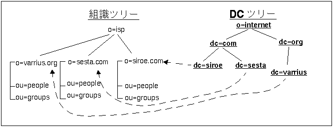 コード例 2-9 ドメイン 別名の作成 dn: dc=florizel, dc=com, o=internet objectclass: alias objectclass: inetDomainAlias aliasedObjectName: dc=sesta, dc=com, o=internet dc: florizel