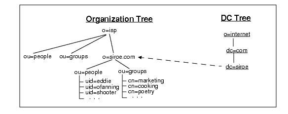 In the Organization Tree we changed root suffix from o=siroe.com to o=isp. While this wasn't operationally necessary, it makes the Organization Tree more standard.