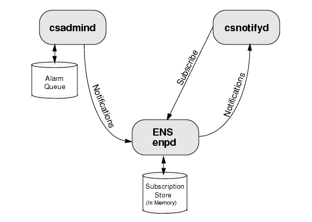 - The csnotifyd daemon is the subscriber that expresses interest in particular events (subscribes), and receives notifications about these subscribed-to events from ENS, and sends notice of these events and todos (tasks) to its clients by email.