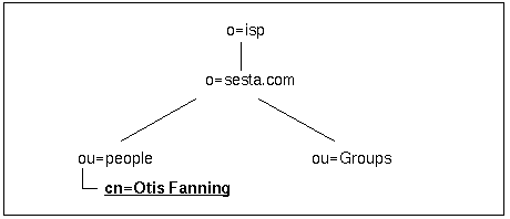 sesta.com email users are in ou=people,o=sesta.com,o=isp in the Organization Tree. Each entry contains attribute information about the user. An LDIF example is shown below.