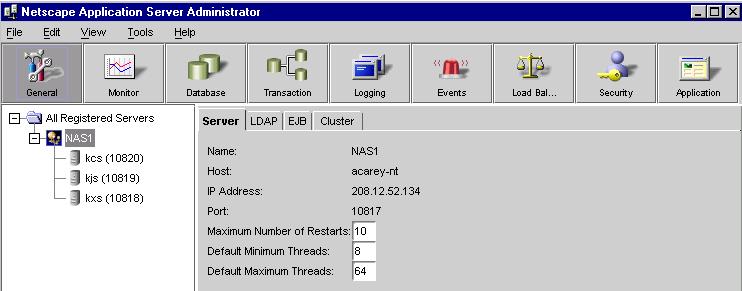 This chapter describes how to get started with Netscape Application Server (NAS) Administrator, as well as the basic NAS configuration tasks you can perform using either NAS Administrator or at the command line.