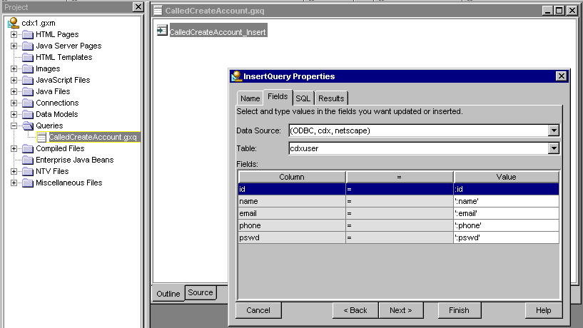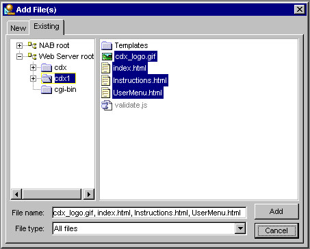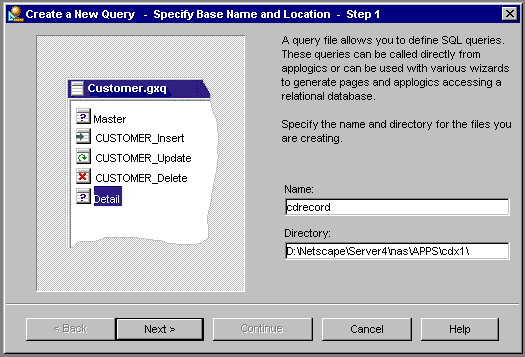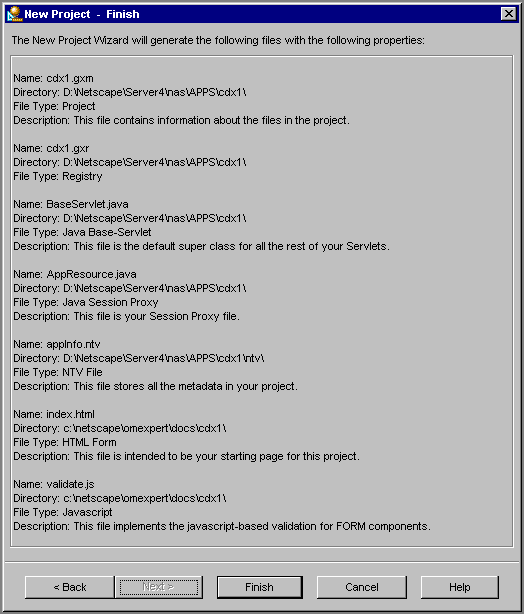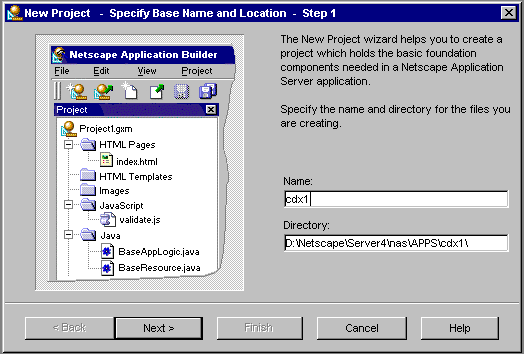 Name the new project "cdx1" in directory "<nasRoot>\cdx1".