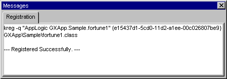 Messages from the compiler appear within the output message window of Netscape Application Builder, as shown in the following illustration. If the compiler finds an error, the location of the error is shown. The messages box that Netscape Application Builder displays allows you to double-click on a line giving the position of a compile error; Netscape Application Builder then displays that specific line of code.