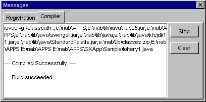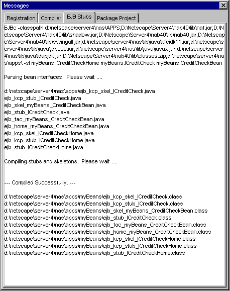 If the servlet contains no syntax errors, Netscape Application Builder displays the Compiled Successfully message.