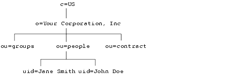 Figure 1.2    A sample corporate user directory structure Directory Structure The Directory Server uses a tree structure to define different sets of data. In a simple case, such as identifying a cluster, you could have a structure like this:
