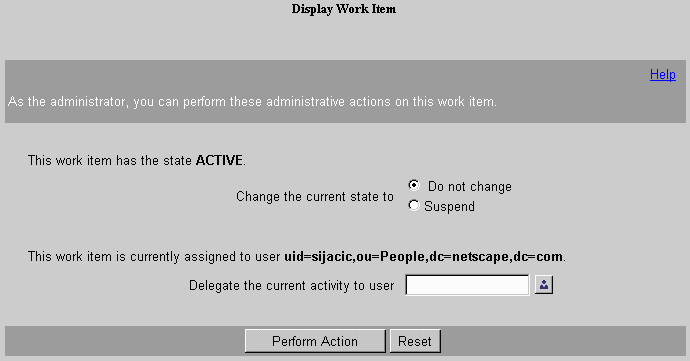 Click Perform Actions when you are done. Figure 2.7    The Display and Administer a Work Item page