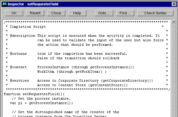 Assignment Scripts Table 8.3 lists the predefined assignment scripts that are available in Process Builder. The documentation below explains what they do, and what parameters you need to supply when you use them to assign a user to an activity. See "Setting Activity Assignments" on page 81 for more information on using assignment scripts in activities. For details on creating assignment scripts, see Appendix A, "JavaScript API Reference."