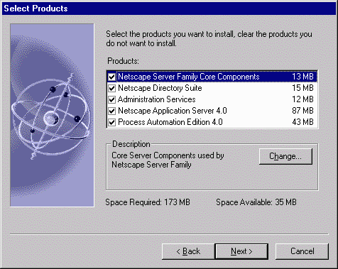 software. The fourth component installs Netscape Application Server and its