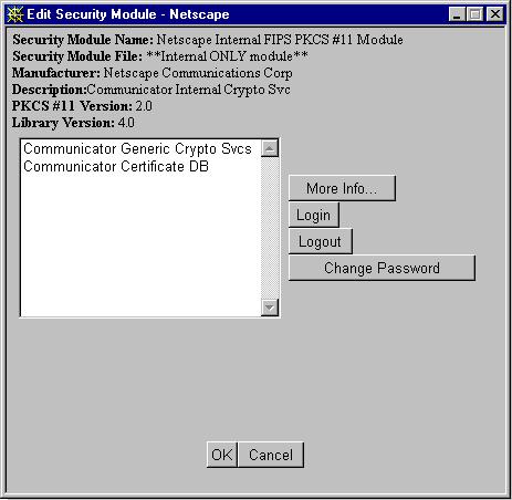 - Click OK to exit the FIPS PUB 140-1 security module window.