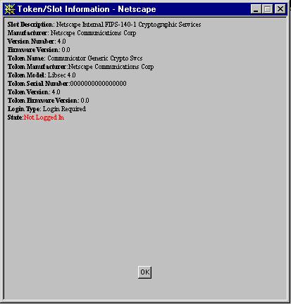 - Click OK to exit the FIPS PUB 140-1 security module window.