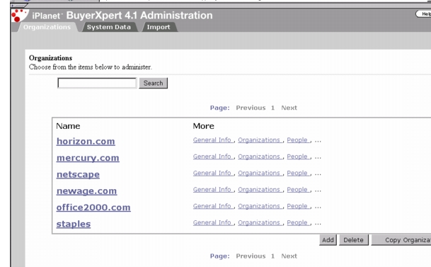 Figure 3-3    BuyerXpert Organizations Tab for Superadmin