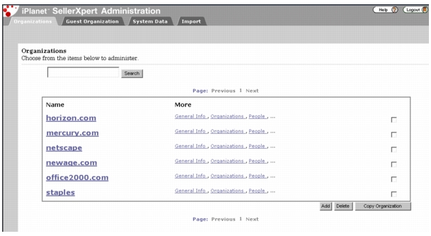 Figure 3-11    SellerXpert Organizations Tab for Superadmirs