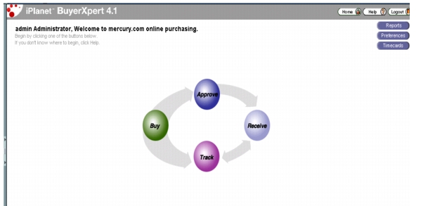 The BuyerXpert User interface is used to buy, approve, track, or receive goods for your organization. After login, a welcome screen appears that is similar to the screen shown in Figure 3-1.