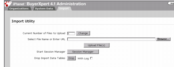 In this screen, the administrator specifies the file(s) to be imported and creates an import session that uploads the data into BuyerXpert.