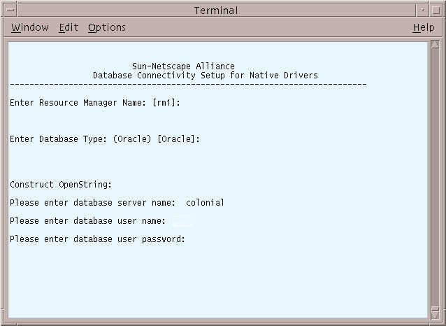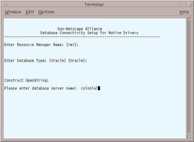 The next prompt displays. Enter the database server name (the machine where Oracle is installed).