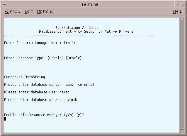 The next prompt displays. Press Enter to enable the Resource Manager.