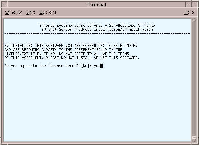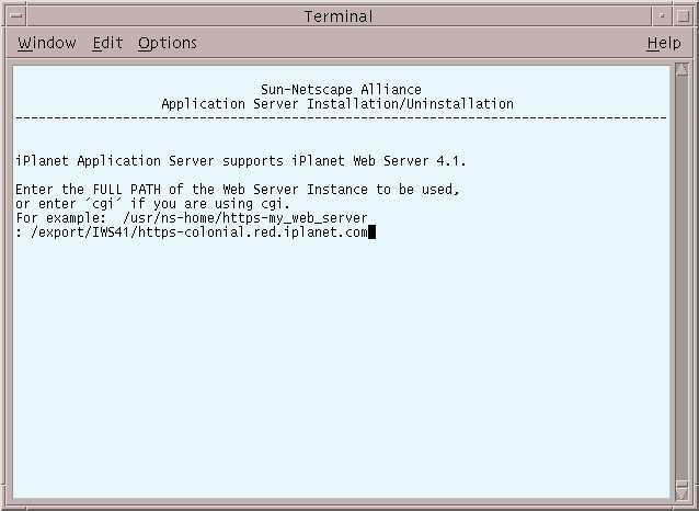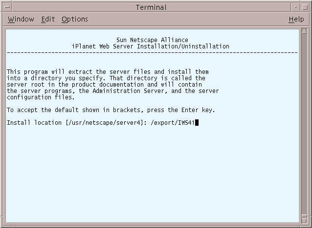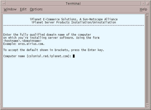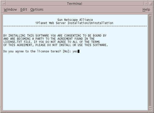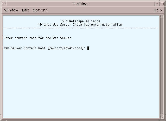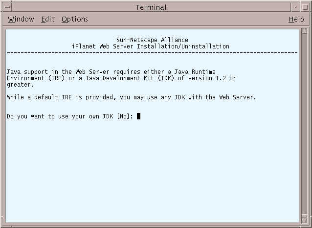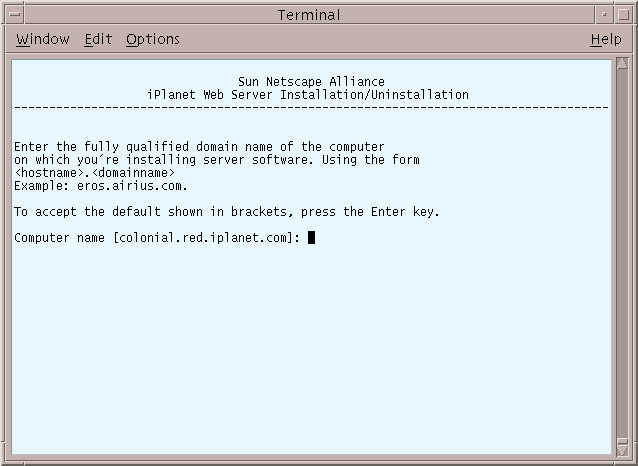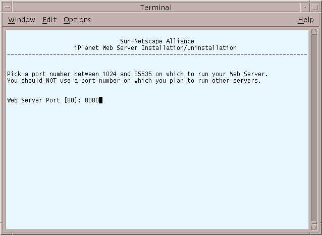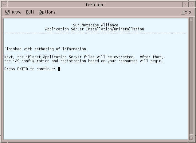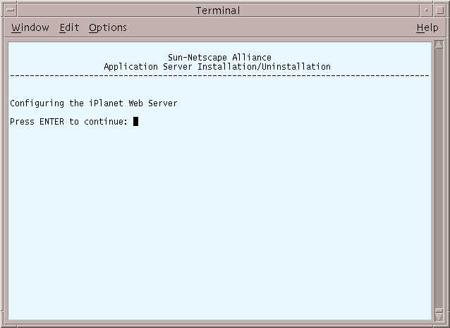 The next screen displays with this message: Configuring the iPlanet Web Server. Press Enter to continue.