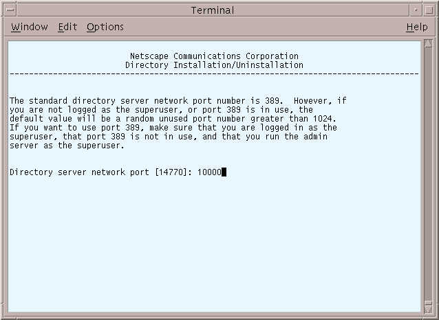 The Directory Server Network Port screen displays. Type 10000 or other port number.