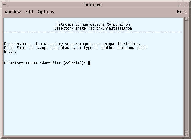 The Directory Server Identifier screen displays. Press Enter to accept the default.