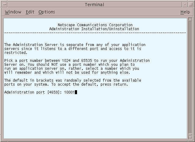 The Administration Server Port screen displays. Type 10001 or your port number.